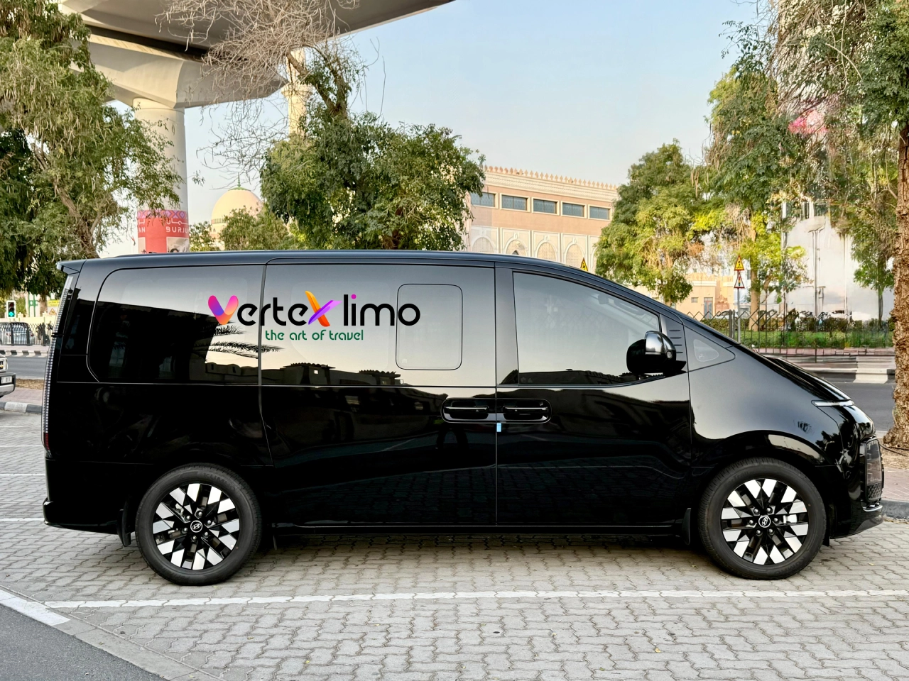 Experience next-level travel with the Hyundai Staria (8-seater) โ a modern MPV designed for family getaways, small tour groups, and corporate teams. Whether youโre heading to the airport, a hotel, or exploring Dubai, the Staria offers comfort, style, and convenience โ all with a professional VertexLimo chauffeur at the wheel.