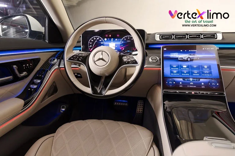 The Mercedes S 500 White is also available for day hire, hourly packages, and long-distance trips.