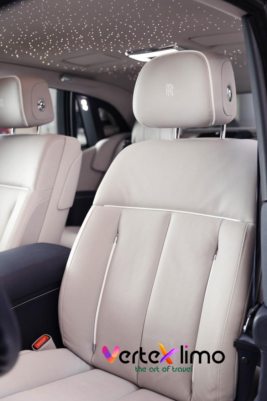 Reserve your Rolls Royce Phantom with driver in Dubai now β travel like royalty with Vertex Limo.